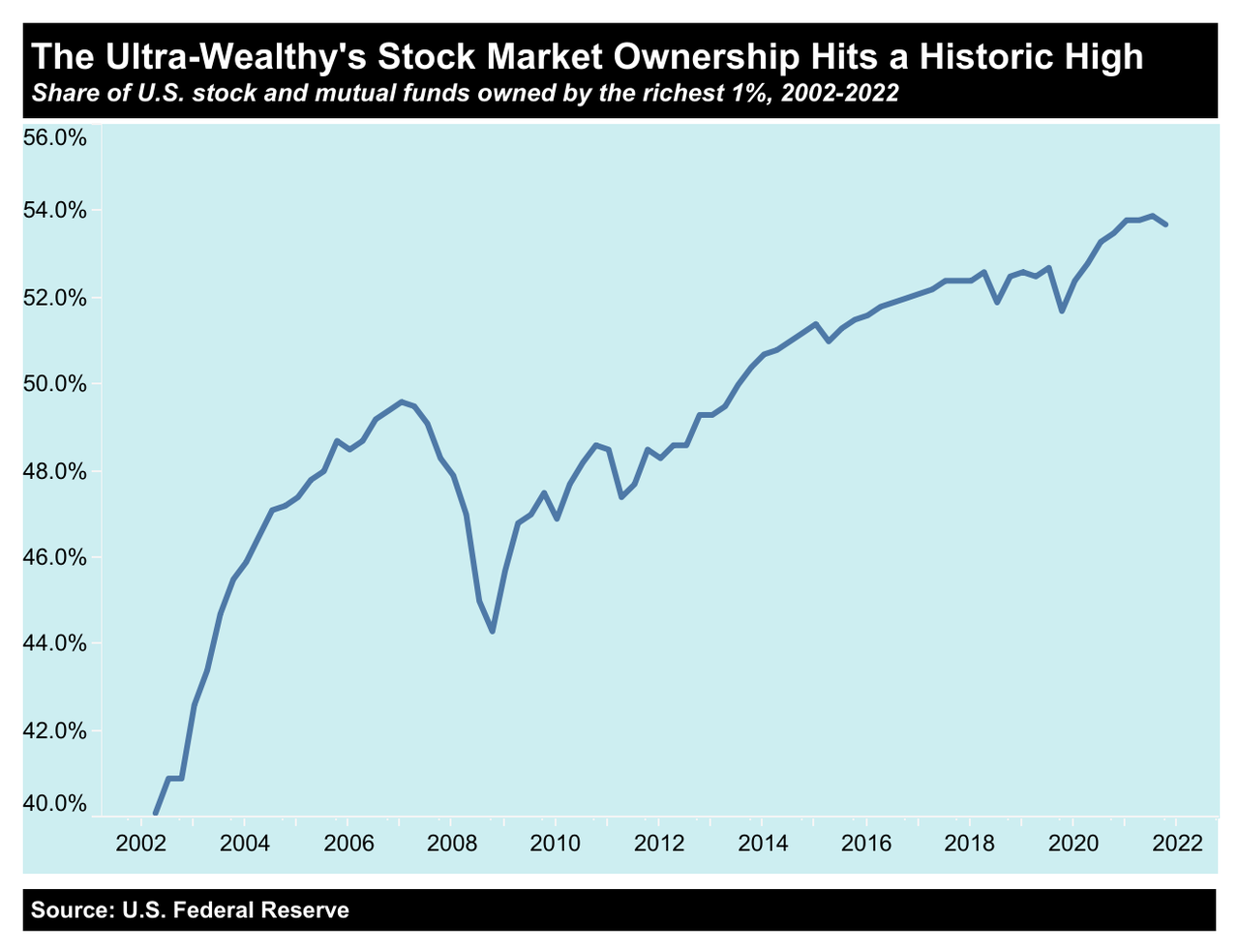When you expand this demographic to include the top 10%, total stock ownership rises to 87% of all stocks owned in the U.S.